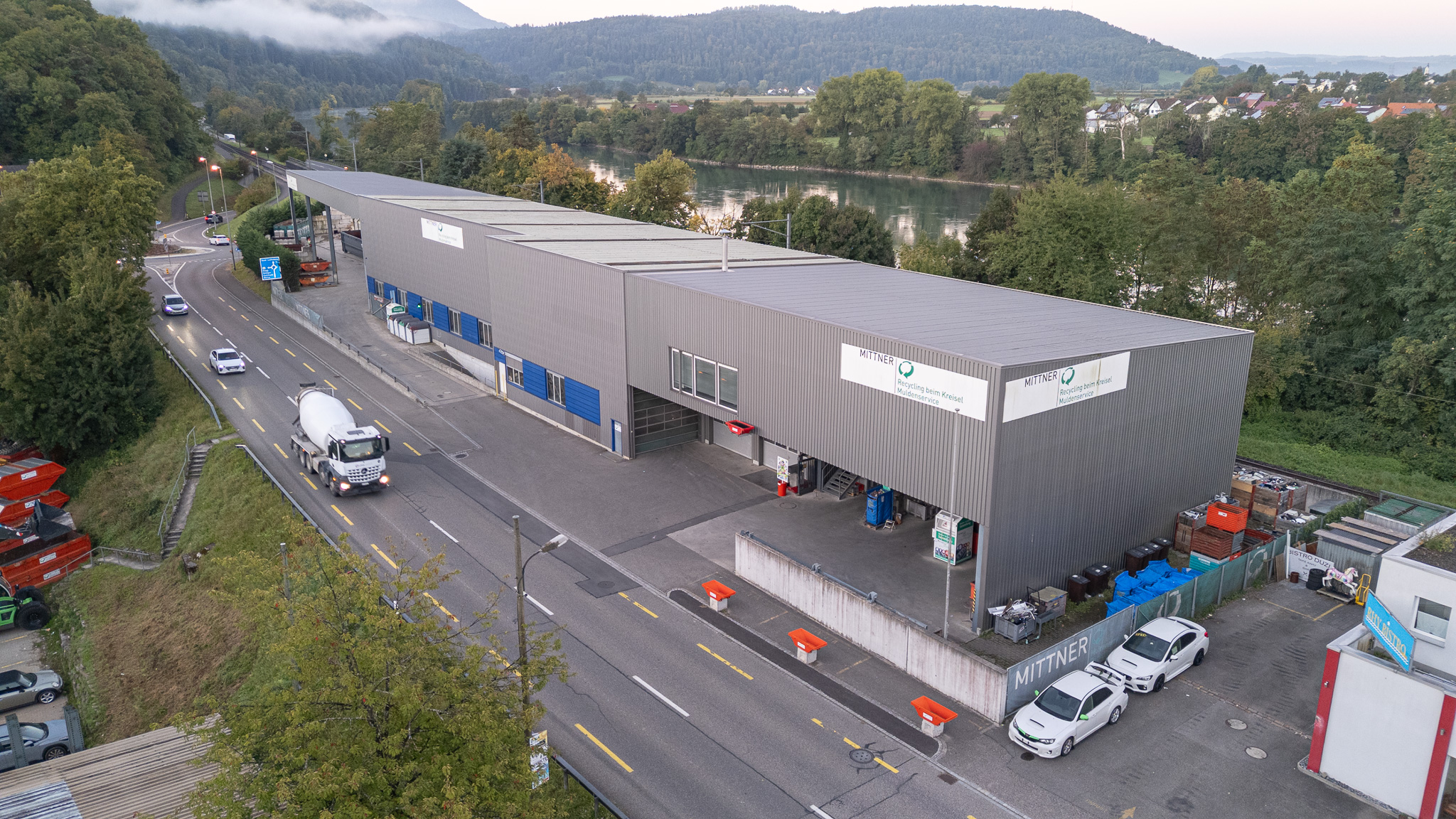 Wo heute die Geschäftsliegenschaft der MITTNER Muldenservice GmbH steht, befand sich zuvor der Bahnhof von Etzgen. Nach dessen Rückbau, konnte mit dem Neubau vom Betriebsgebäude mit Werkhalle gestartet werden.